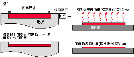 移印油墨與絲印油墨相似,但絲印油墨不會(huì)快速揮發(fā),否則油墨就會(huì)在網(wǎng)框里干透。反之,移印油墨則需要有高度揮發(fā)的功能,令油墨能輕易黏上及離開(kāi)膠頭。另外,移印油墨比起絲印的會(huì)較薄。(圖1)